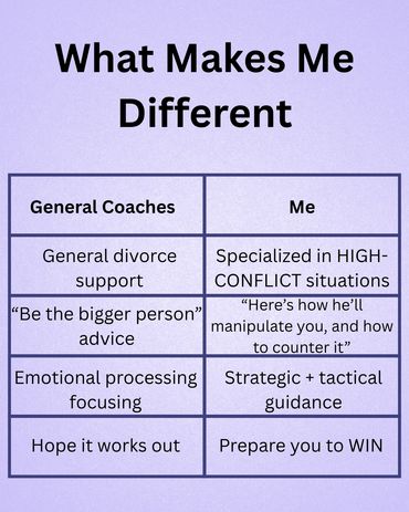 That's why I became a certified high-conflict divorce coach, to give you the tactical playbook your ex doesn't want you to have.